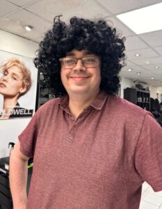 Max at Simon Constantinou Little Princess Trust wear a wig day